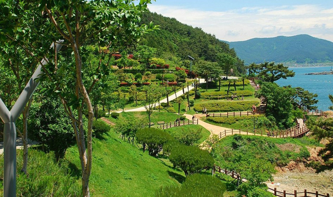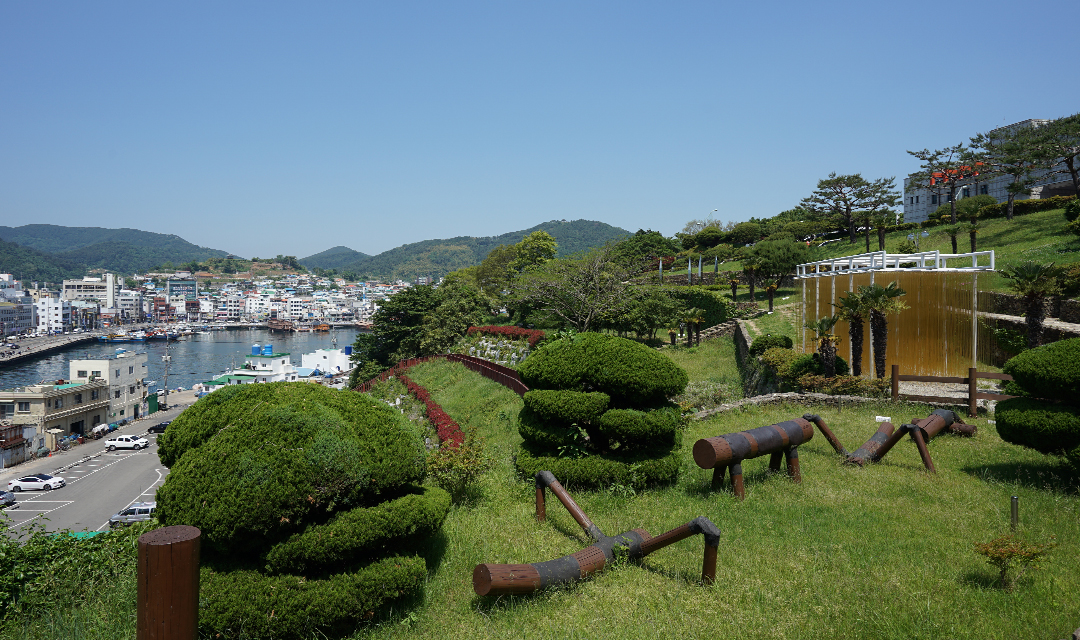 옛날 임진왜란 당시에 왜적소탕에 큰 역할을 했던 천자총통이 바다를 바라보며 서있고, 바다를 향해 손짓하고 있는 이순신동상의 모습도 매우 인상적이다. 거북선의 조각과 토피어리 등 볼 거리가 많고 한적하다. 나지막한 산책로와 목재데크로 아름답고 편안한 느낌을 준다. 바다와 함께 어우러져 자연을 즐기며 시간을 보내는 것도 좋을 것이다. 바닷가로 내려가면 하얀 포말을 일으키는 파도를 바라보며 바위에 걸터앉아 휴식을 취할수 있고 바닷가는 간이 모래밭이 있어 여름에는 수영도 할 수 있다. 공원 중앙에는 정자가 우뚝 자리하고 있으며 여기에 앉아 한산도를 바라보며 세상만사 잊어버리고 망중한을 즐기는 것도 심신에 좋을 것이다.