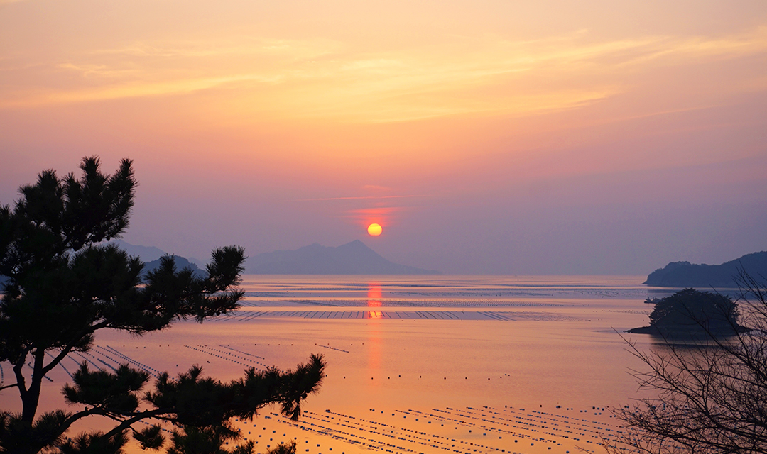 노을지는 풍경이 일품인 평인일주로는 통영의 드라이브 명소이다. 인도가 넓고 안전하게 되어있어 마음껏 걸으며 곳곳에 펼쳐지는 해안풍광을 즐길 수 있다.